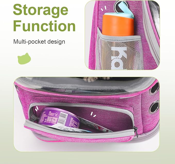 - Multi-Pocket Design: Our pet carrier backpack offers plenty of storage options for your convenience. With side pockets and hook holes, you can easily carry essentials such as treats, toys, and water bottles for your pets. The multi-pocket design allows you to organize your belongings efficiently, making outdoor adventures and trips more enjoyable.