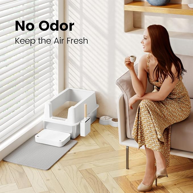 - 【EFFORTLESS ODOR CONTROL】Engineered to absorb urine and mask odors effectively, this steel litter box ensures a pleasant environment for both you and your cat. Unlike traditional plastic boxes, our extra large litter box is easy to clean—simply rinse with water and wipe with a cloth. Plus, with the included wall-mountable cat litter scoop, maintaining your cat litter box is a breeze.