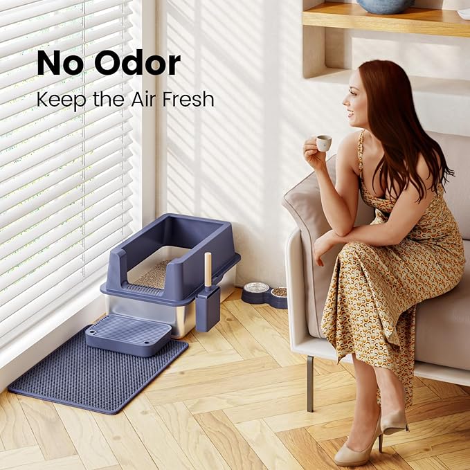 - 【EFFORTLESS ODOR CONTROL】Engineered to absorb urine and mask odors effectively, this steel litter box ensures a pleasant environment for both you and your cat. Unlike traditional plastic boxes, our extra large litter box is easy to clean—simply rinse with water and wipe with a cloth. Plus, with the included wall-mountable cat litter scoop, maintaining your cat litter box is a breeze.