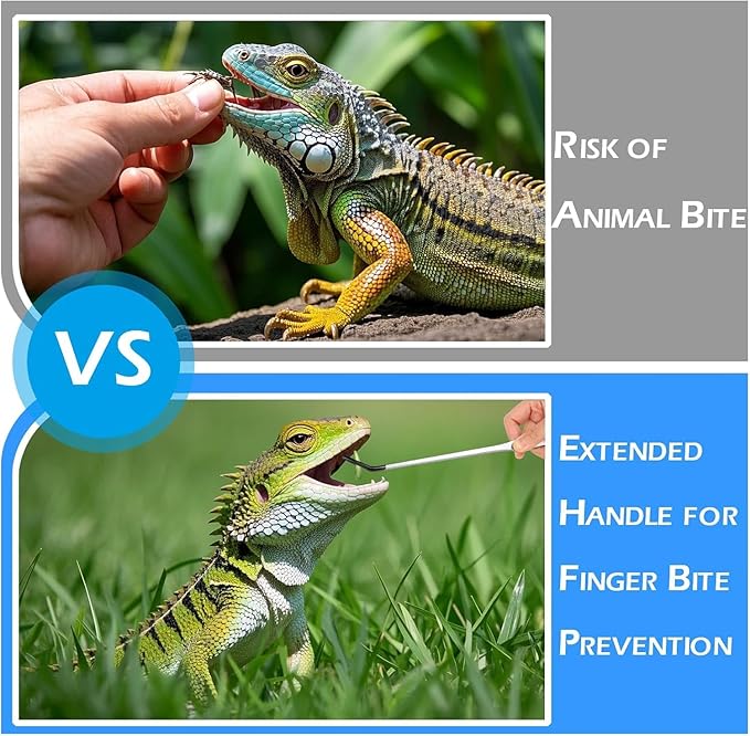 - 【304 STAINLESS STEEL】: Crafted with corrosion-resistant 304 stainless steel for lifelong durability in humid terrariums. Silicone-coated tips prevent reptile oral injuries while securing live prey like crickets/mealworms without slippage