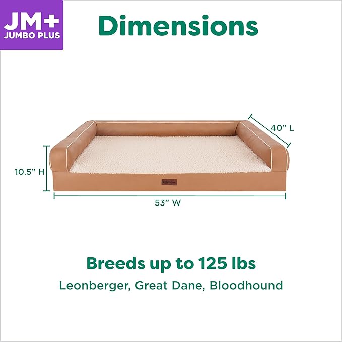 FurHaven Orthopedic Dog Sofa Bed – Memory Foam Couch with Bolsters, Textured Plush & Water-Resistant Cover, Washable Cover, Joint Support - Camel, Jumbo Plus