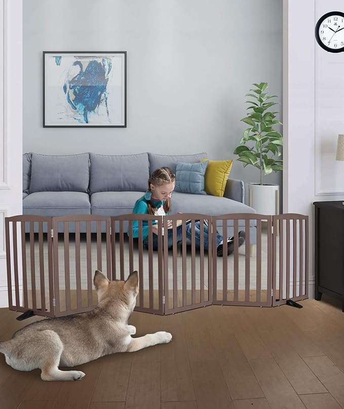 - 【6 PANELS】 Dog gates is built with 6 separate panels, secured together with sturdy stainless steel hinges.dog gates is a dog fence, room divider, and pet pen all in one.