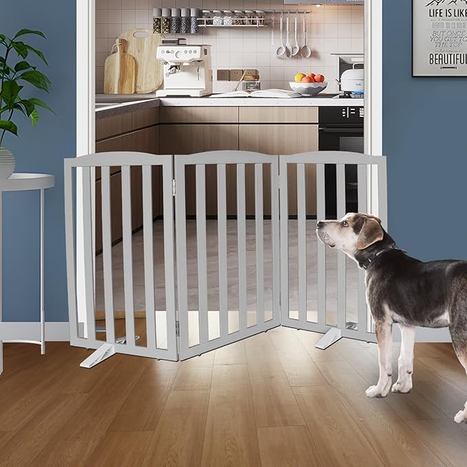 - 【3 PANELS】 Dog gates is built with 3 separate panels, secured together with sturdy stainless steel hinges.dog gates is a dog fence, room divider, and pet pen all in one.