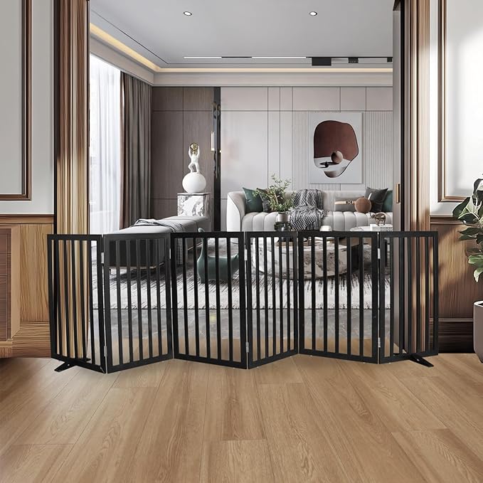 - 【6 PANELS】 Dog gates is built with 6 separate panels, secured together with sturdy stainless steel hinges.dog gates is a dog fence, room divider, and pet pen all in one.