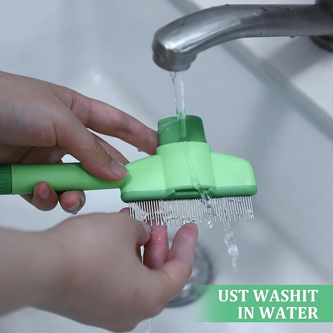 - One Click Self-Cleaning: When you need to clean animal hair on your comb, just press the button to make your comb clean, and it's easy to operate with one hand. Lice combs are smooth without sharp edges, which do not hurt your dogs and cats.