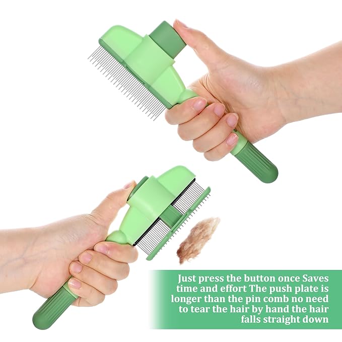 Flea Comb for Cats Dogs Brush for Shedding with Release Button Fine Tooth Pet Hair Removal Comb with Long & Short Stainless Steel Teeth for Deshedding Self-Cleaning Brush for Cat Dog Small Pets