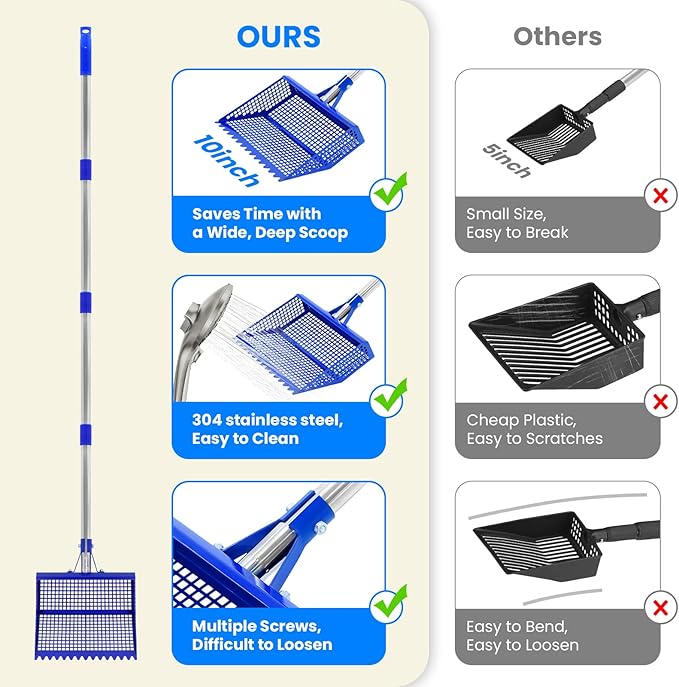 - Multi-Surface Use & Year-Round Durability:Versatile design perfect for chicken coops, cat litter boxes, beach sand, and cattle pens,High-quality metal construction ensures reliable performance in all seasons.