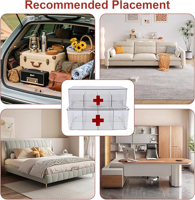 - 1. Durable Medicine Box: First aid box set are made of high-quality reinforced acrylic material, boasting durability and resistance to wear and tear. Unlike other containers, acrylic clear containers are more durable and lightweight, and less prone to deformation or breakage, suitable for long-term usage.