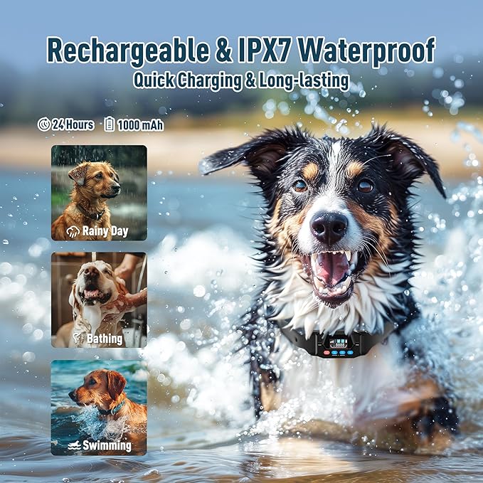 - [Rechargeable & IPX7 Waterproof]:The invisible fence collar is IPX7 waterproof and rechargeable with a battery life of up to 24 hours; The GPS signal must be three bars or more and only work outdoors without interference