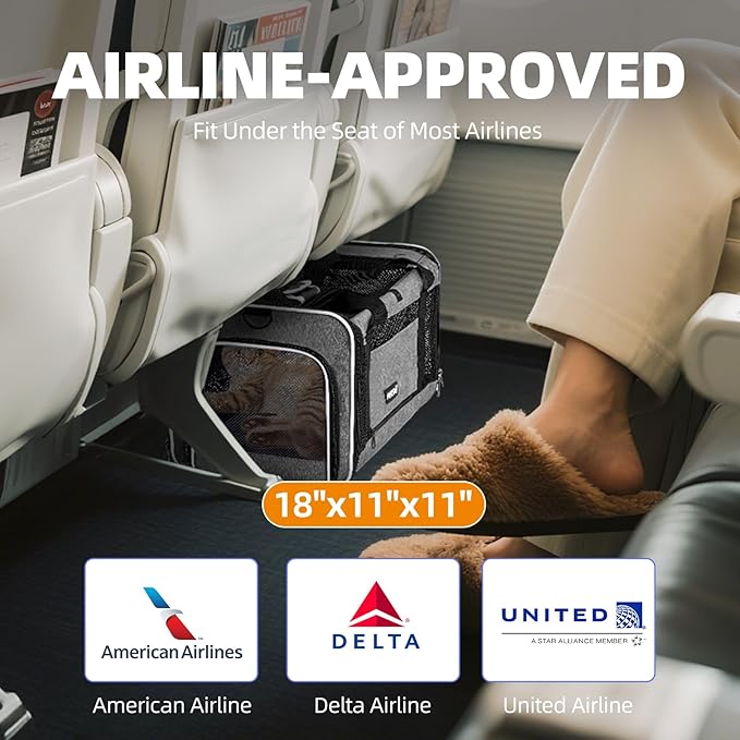- Flight-Ready Features - This puppy pet crate fits under seats on American, Delta, and United flights. An adjustable shoulder strap for convenient airport trips and a collapsible design for easy storage. *Please always verify carrier dimensions with your airline 72hrs pre-flight