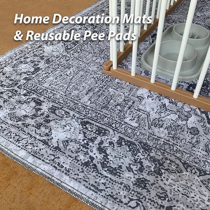 nunubaby Washable Pee Pads for Dogs, Stylish, Non-Slip and Leak-Proof Pee Pads. Reusable Potty Pads for Dogs for Crates and Floors.(Gray/Geo, 54" x54" )