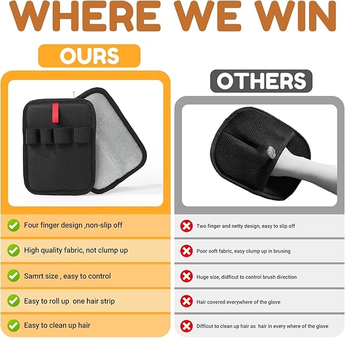- 【Easy to use&Non-slip off】Our pet hair removal glove has been upgraded to four finger design to avoid slid off. you just rub it from right to left several times,the pet hair or lint or pet fur will be roll up in the middle of the glove, then just peel hair strip off.only simple and several rub motion, you can clean your upholstery quickly.
