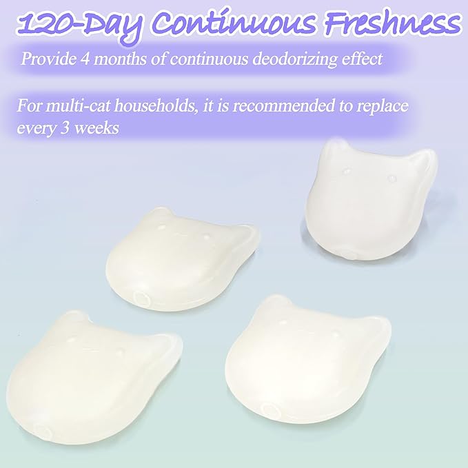 - 120-Day Continuous Freshness: Contains four deodorizers that provide 4 months of continuous deodorizing effect. Each unit maintains peak effectiveness for 30 days. For multi-cat households, it is recommended to replace every 3 weeks