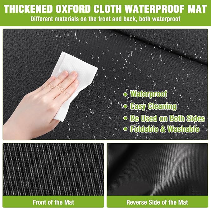 - Thickened Oxford Cloth Water-Resistant Mat Features different water-resistant materials on both sides, easy to clean, usable on either side, foldable, and washable for long-lasting convenience.