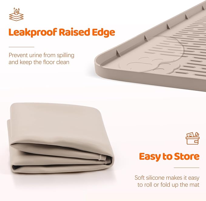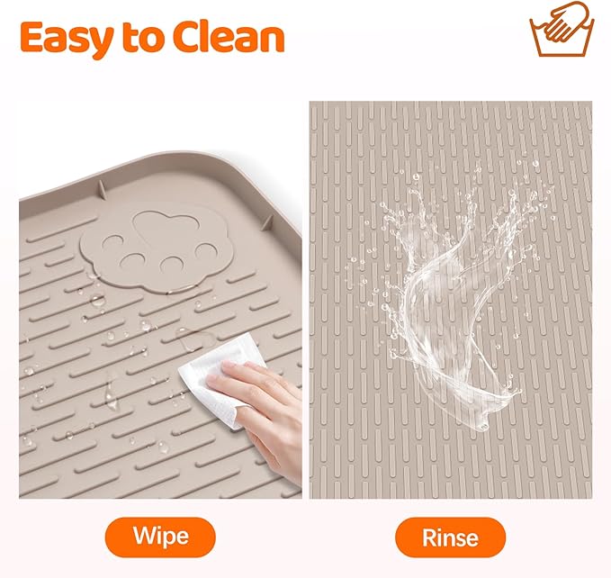 - Versatile Design: In addition to being a potty training pad, this silicone mat can also be used as a pet food mat for bowls, a reliable feeding pad to prevent spills, and even as a cat litter box mat. This silicone mat, smooth silicone surface effortlessly contains kibble crumbs, water drips, and scattered litter, keeping spaces neat. Crafted from soft, flexible silicone, this dog training pad folds easily for storage or travel.