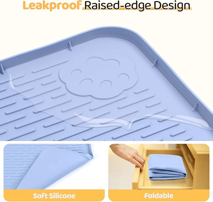 Dog Food Mat, Extra Large 40" x 28" Silicone Pet Feeding Mat with Raised Edge Pet Placemat for Small, Medium, and Large Pets Non-Slip, Easy to Clean (Blue)