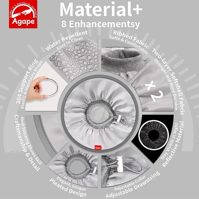 - 【Enhanced Protection & Freedom】The Agape Cat Recovery Collar features a 304 stainless steel support ring and a larger diameter, addressing the issue of insufficient protection found in some collars that are too soft or too small. This design ensures your cat can eat, drink, and play freely, without blocking their vision, allowing them to maintain their usual activities and comfort during recovery (Please note: While using the collar, it may affect your cat's ability to enter a closed litter box or cat door)