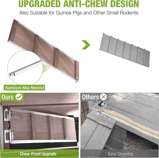 - STURDY CHEW-RESISTANT RABBIT HUTCH: Crafted from weather-resistant fir wood and heavy-duty metal framing, this 2-story rabbit hutch (also ideal as a guinea pig hutch) stands up to chewing, rain, and daily wear. Perfect for active rabbits, bunnies, and small pets, its durable build works equally well as an indoor rabbit cage or outdoor shelter