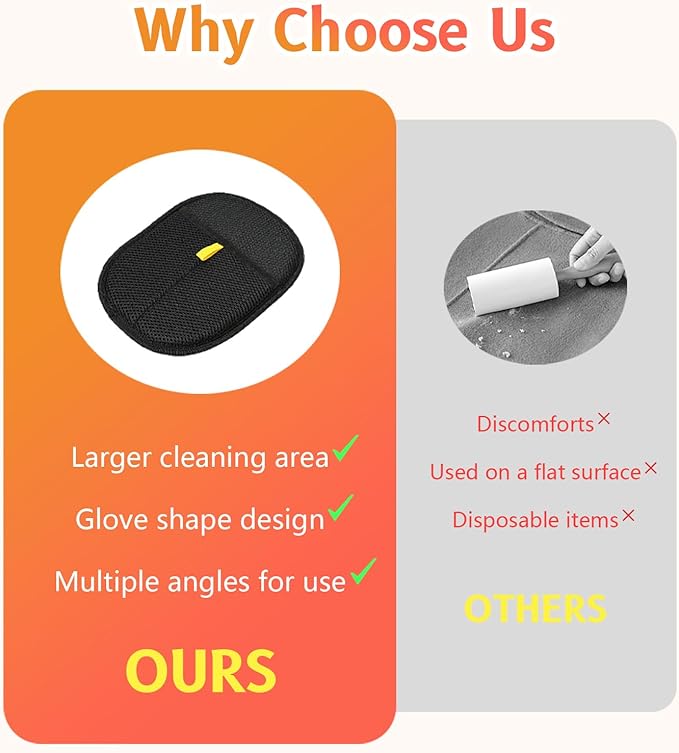 - 【Pet Hair Removal Glove】 Powered by static electricity, the pet hair removel attract lint, pet hair, and dust with simple glide. No more repetitive rolling or struggling to pick up stubborn debris